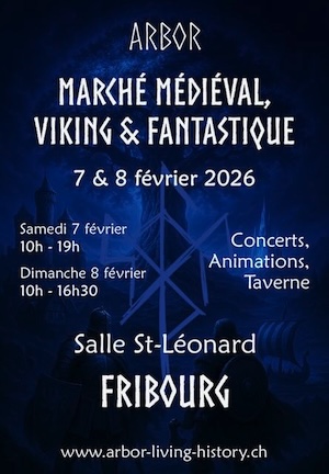 - Samedi 7 et dimanche 8 février 2026 : Marché médiéval, viking et fantastique à la salle St-Léonard à Fribourg https://www.arbor-living-history.ch