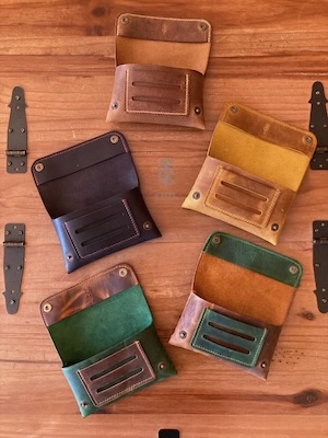 J’utilise principalement du cuir tannage végétal et des teintures à l’eau. Les coutures sont faites au fil de lin et point de sellier.